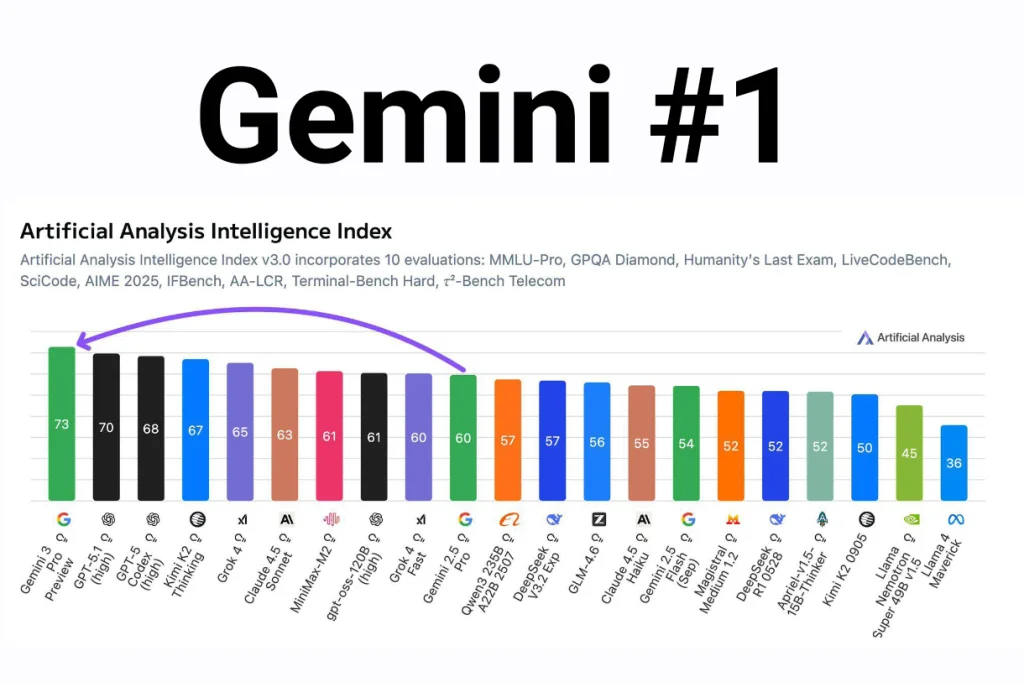 به نوێكردنهوهی دوێشهوهی Gemini و بڵاوكردنهوهی Gemini 3 Pro، Google پێوهره نوێیهكانی بۆ ههموو مۆدێله زمانه گهورهكان دانا و سهركهوتوانه پلهی یهكهمی بهدهستهێنا لهناو ههموو مۆدێله ڕكابهرهكاندا!